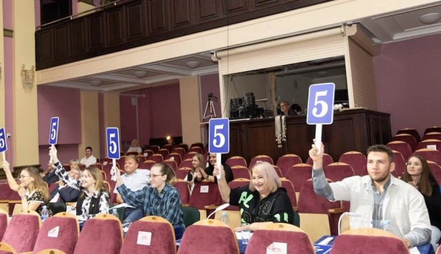 Жюри оценивало выступления команд в конкурсах "Приветствие", "Импровизация" и "Знакомый сюжет".